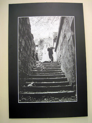 Есть на выставке и «внесерийные» фото. Например, невеста на фоне подъезжающего в сумерках трамвая, молодожены на старинной лестнице, и один откровенно эротический кадр. А на одной фотографии вообще нет людей. Стоят, прислоненные к стене, две пары темных очков – и ощущается, что между ними есть какие-то отношения.