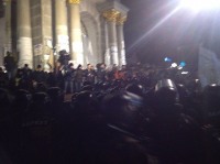 Спецподразделение милиции «Беркут» около 4 утра жестко разогнал мирную демонстрацию на главной площади Украины – Майдане Незалежности. Среди демонстрантов в основном были студенты. Очевидцы сообщают, что "Беркут" бил дубинками всех без разбора - молодых людей, девушек; их били ногами и тащили по земле. Среди пострадавших есть журналисты, в том числе и агентства Reuters.